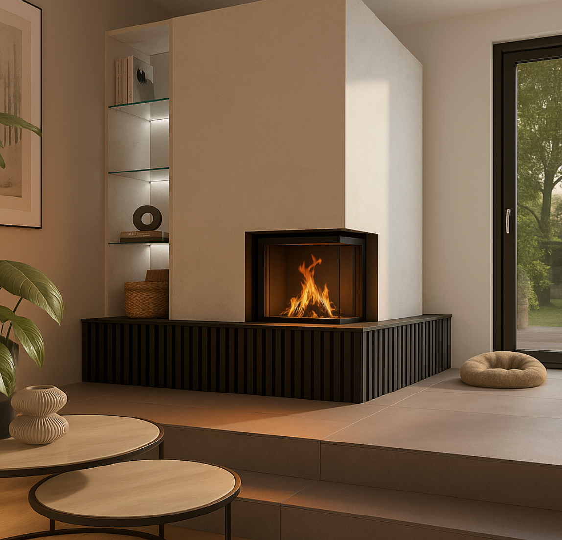 Nonostante le dimensioni contenute, la forma a U con tre vetri offre una visione ampia e suggestiva delle fiamme, trasformando il camino in un vero elemento scenografico capace di valorizzare qualsiasi ambiente.